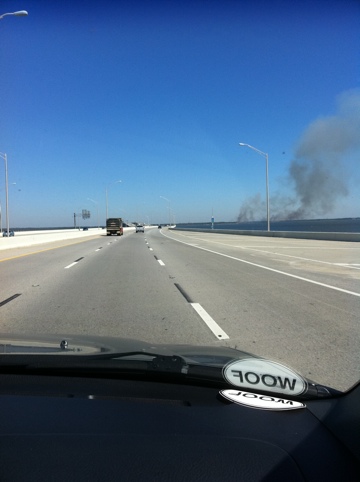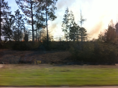 Our first water as we head into Florida along with a crazy brush fire along the side of the road.