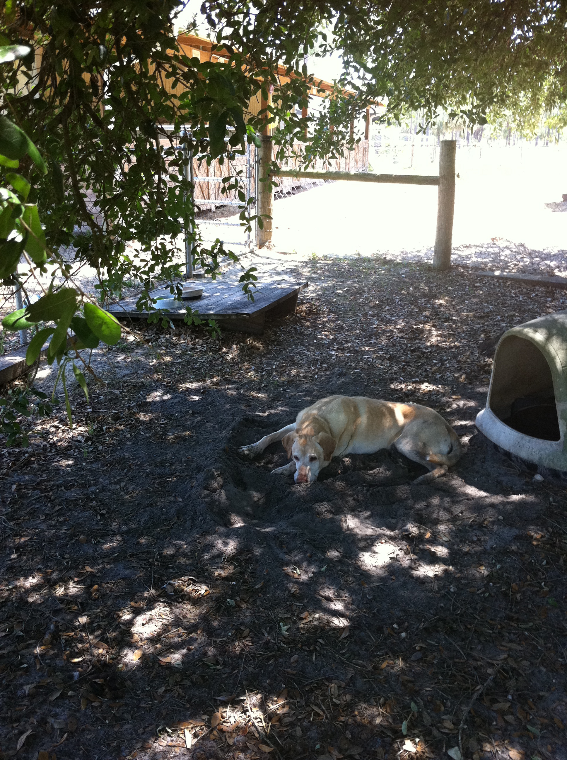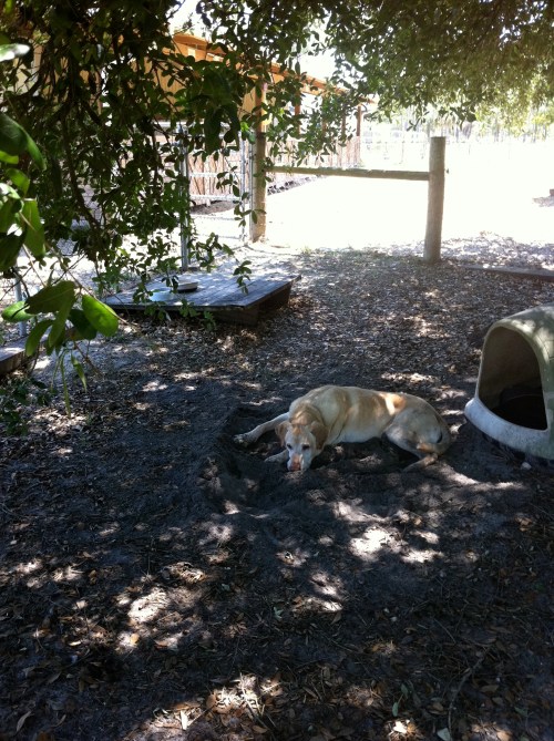 Miles likes to dig a hole in the sand to get to the cool spot and then scoop the sand back onto his belly!