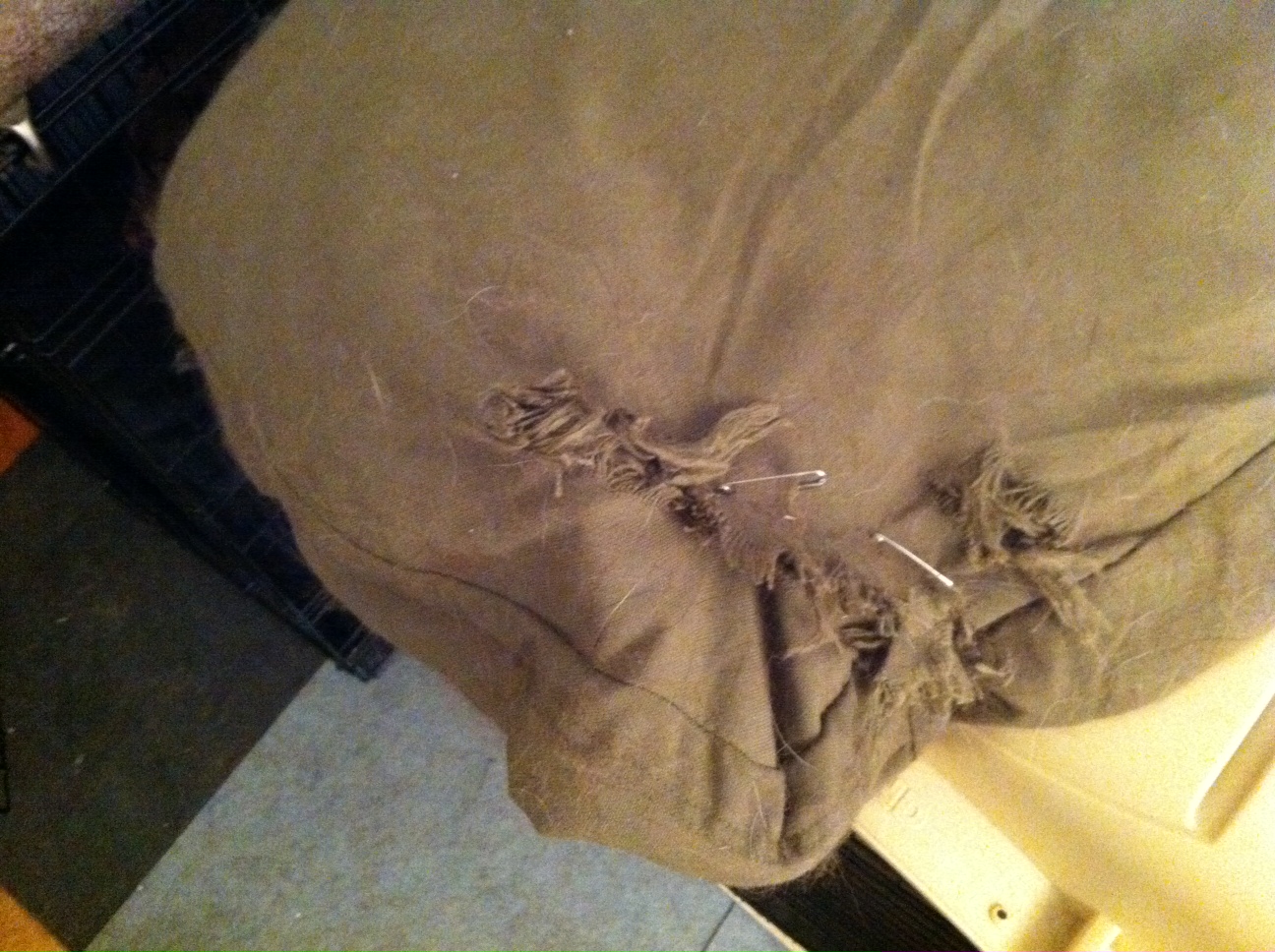 So like many dog owners we have a couple of members of our family that like to chew or dig when they get bored. Specifically Marley and Miles. Miles is the digger, I don’t know where he thinks he’s going but he digs none the less. Marley on the other had has spent the entire weekend in the hospital filled to the brim with polyfil after consuming the better part of his dog bed.