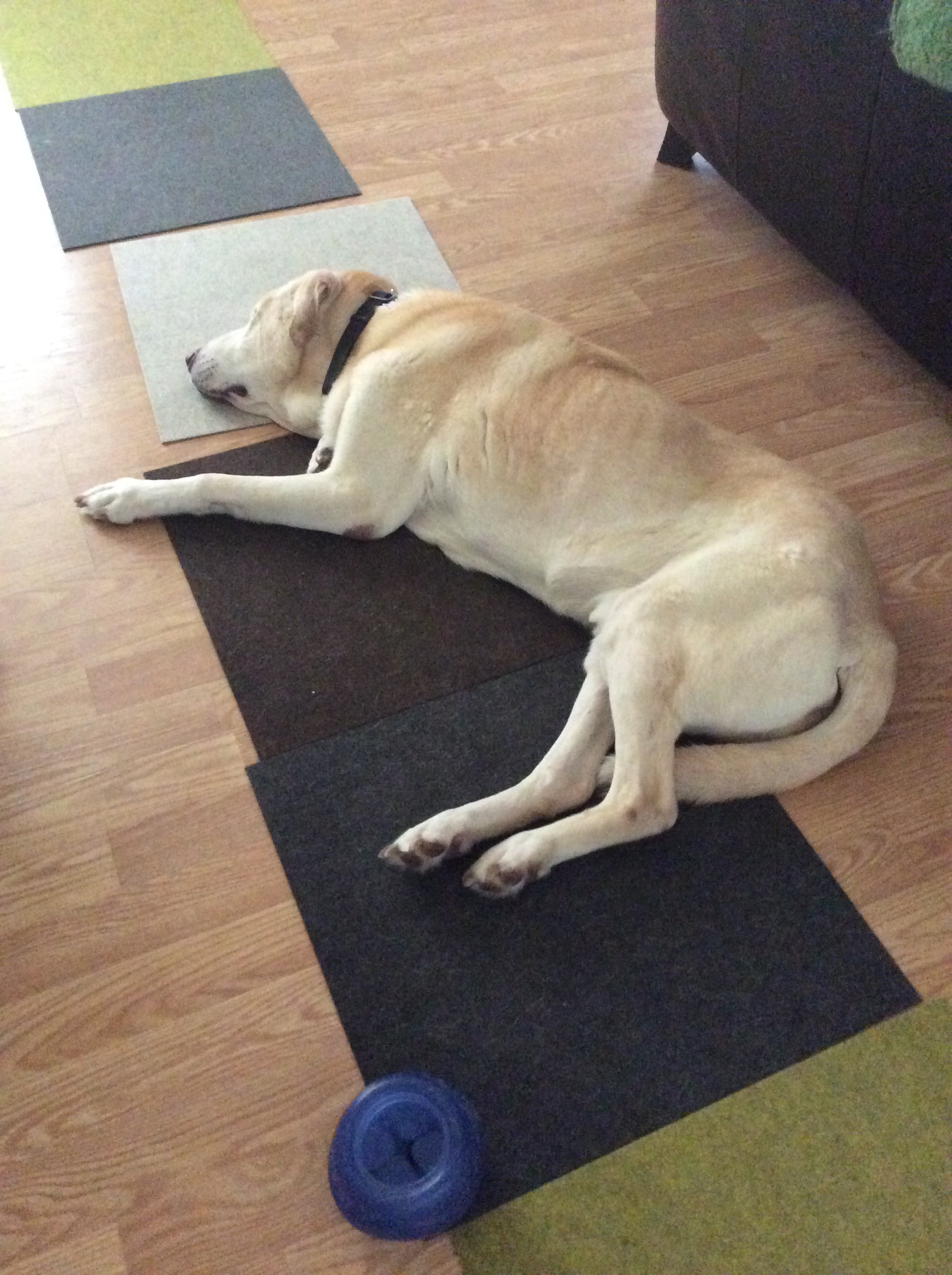 The remainder of his day was filled with naps, treats and just general calm and peacefulness at not having to deal with his brother and sister. For the first time since we’ve lived here we had a truly relaxing afternoon in the pool with Miles alternating between sunny grass and shady porch. No Marley nervously circling the pool waiting for one of us to jeopardize the pack by going under water, nor Morgan trying to eat every gecko that runs by.
